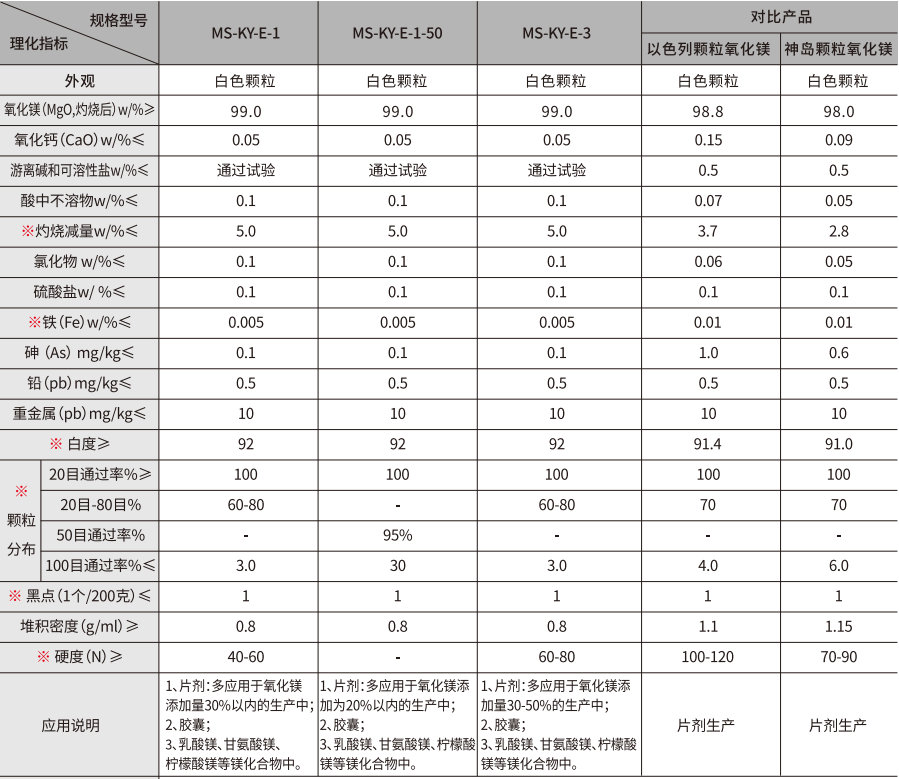 產(chǎn)品描述:本品為白色顆粒,無臭、無味、無毒,在空氣中容易吸收水分和二氧化碳,溶于酸,幾乎不溶于水應(yīng)用行業(yè):廣泛應(yīng)用于食品、保健品、醫(yī)藥行業(yè)片劑、膠囊劑、甘氨酸鎂、檸檬酸鎂等的生產(chǎn)加工